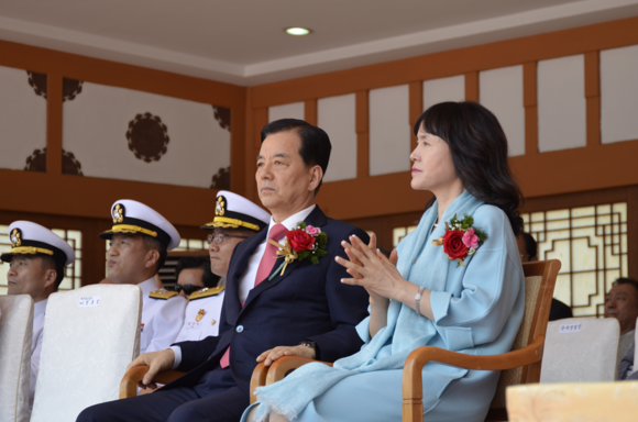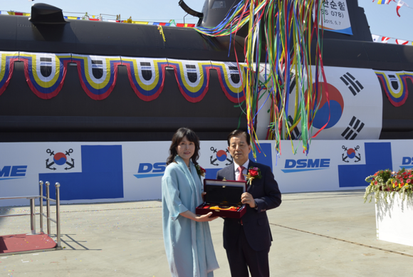 (CNB=최원석 기자) 한민구 국방부장관 내외가 7일 오후 2시 경남 거제 대우조선해양에서 열린 대한민국 해군의 214급 1800t 잠수함 ‘유관순함’의 진수식에 나란히 참석해 자리를 빛냈다.