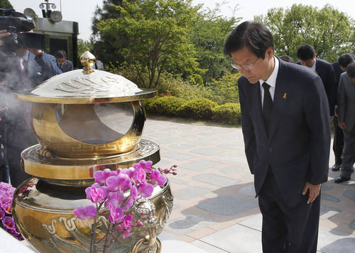 ▲무소속 천정배 의원이 7일 오전 동작구 국립서울현충원 고(故) 김대중 전 대통령 묘역을 참배하고 있다.(사진=연합뉴스)