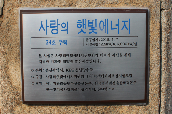 (CNB=최원석 기자) 지난 7일 울주군 두서면에서 2015년 사랑의 햇빛에너지 보급사업의 시작을 알리는 2015년 1호(누적 34호) 주택 준공식이 열렸다.
