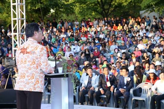 ▲최성 고양시장은 폐막식에서 고양국제곷박람회를 위해 특별히 제작된 일명 '꽃정장'을 입고 100만 고양시민들 앞에 서 환호를 받기도 했다.
