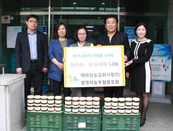 11일 전남에 터를 둔 농촌기업인 ‘매화담’농업회사법인(대표 문현정)과 ‘열명의농부’협동조합(이사장 박수열)이 광산구 우산동에 사는 형편이 어려운 이웃들을 위해 써달라며 반찬과 도서를 각각 전달했다.