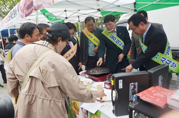 농협중앙회 경기지역본부(본부장 오경석)는 11일 용인시 수지구청 직거래장터에서 한돈자조금위원회와 용인축협 공동으로 5월 가정의 달 맞이 축산사랑을 주제로 축산농가 소득증진 및 소비촉진 활성화를 위한 축산물 소비촉진 행사를 실시했다.