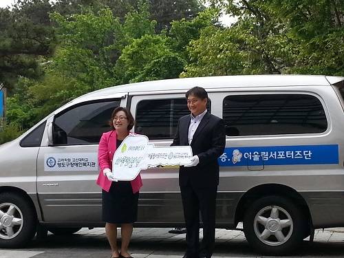 (CNB=한호수 기자) 영도구 장애인복지관 후원 단체인 어울림서포터즈단(단장 박지용)은 11일 영도구 장애 가족 여행 프로그램인 '네소원을 말해봐' 전용차량 (12인용, 스타렉스) 1대를 영도구 장애인 복지관에 기증했다.