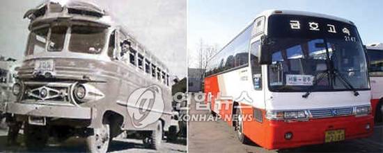▲금호고속의 전신인 광주여객 버스(왼쪽)와 현재 서울-광주를 운행중인 고속버스. (사진=연합뉴스)