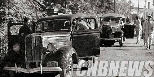▲금호아시아나그룹의 창업자 박인천(朴仁天, 1901~1984)은 포드 35년형(앞), 내쉬 33년형(뒤) 등 중고 택시 2대를 구입해 1946년 광주 황금동에 ‘광주택시’란 상호로 사무실을 오픈했다. 이때부터 금호고속의 신화가 시작됐다. (사진=금호고속 제공)
