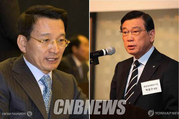 ▲김상열 호반건설 회장(왼쪽)과 박삼구 금호아시아나그룹 회장의 최근 모습. (사진=연합뉴스)