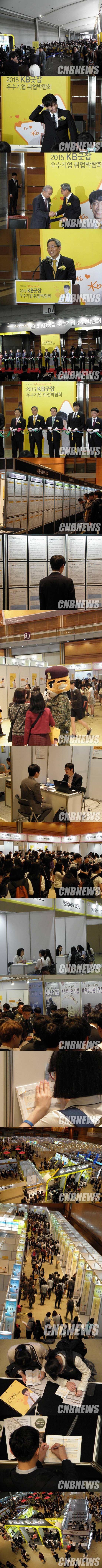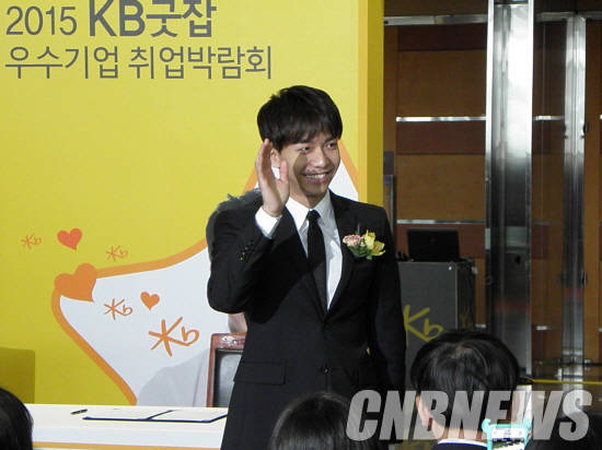 KB국민은행은 13일 코엑스에서 ‘2015 KB굿잡 우수기업 취업박람회’를 개최했다. 이번 행사는 14일까지 진행된다. 사진은 KB금융그룹의 광고모델인 이승기 씨가 개막식에 참석한 모습. (CNB=이성호 기자)