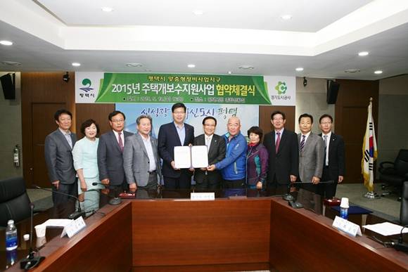 경기도시공사가 평택시와 최금식 경기도시공사 사장, 공재광 평택시장 등이 참석한 가운데 13일 평택시 안정2,8리 맞춤형정비사업지구 내 저소득계층을 위한 주택개보수지원사업 추진을 위한 업무협약을 체결했다고 밝혔다.