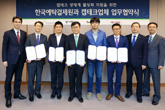 (CNB=최원석 기자) 한국예탁결제원(사장 유재훈)은 15일 증권·금융 관련 캡테크 3개 업체(두나무, 씽크풀, 위버플)와 '캡테크 생태계 활성화 지원'을 위한 업무협약을 체결했다.