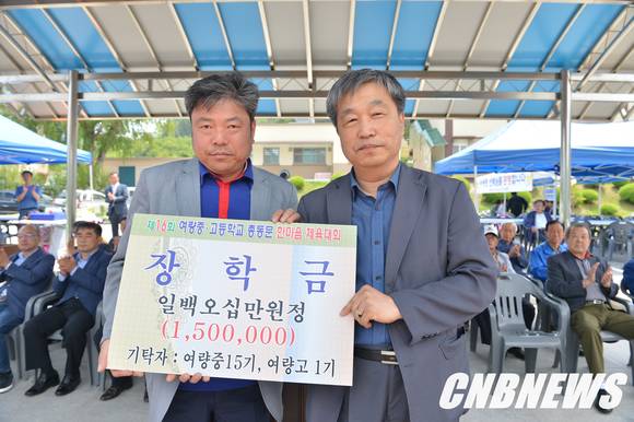 이날 행사에서는 체육대회 주최 기수인 여량 중 15기, 고 1기(회장 위창희)에서 모교 인재육성을 위해 써달라며 신동범 여량고등학교장에게 장학금 150만 원을 기탁했다.