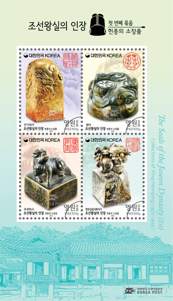 그 첫 번째 묶음으로 헌종이 소장했던 사인(私印) 4점을 선정하였으며, 이어서 왕실의 권위를 상징하는 의례용 도장인‘어보(御寶)’와 국사(國事)에 사용되던 관인(官印)인‘국새(國璽)’도 우표로 발행한다.