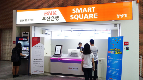 ‘경성대 스마트 지점(SMART SQUARE)’은 IT 기술을 접목한 고성능 스마트ATM기를 이용, 고객이 자기 주도적으로 금융거래를 이용할 수 있는 미래지향적 스마트 지점이다.