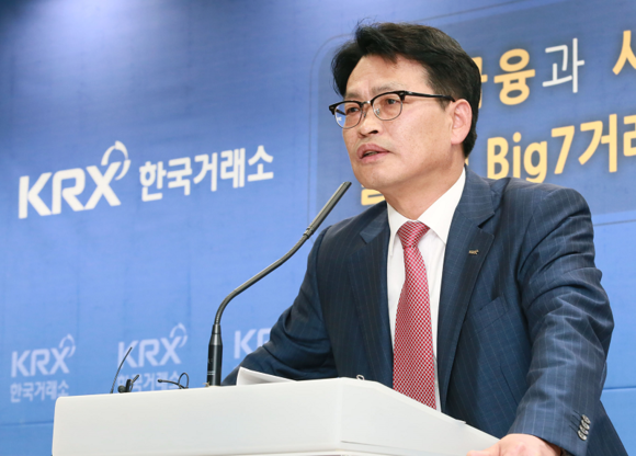 ▲19일 거래소 김원대 유가본부장이 주식시장의 가격제한폭 확대 시행에 대해 설명하고 있다. (사진제공=거래소)