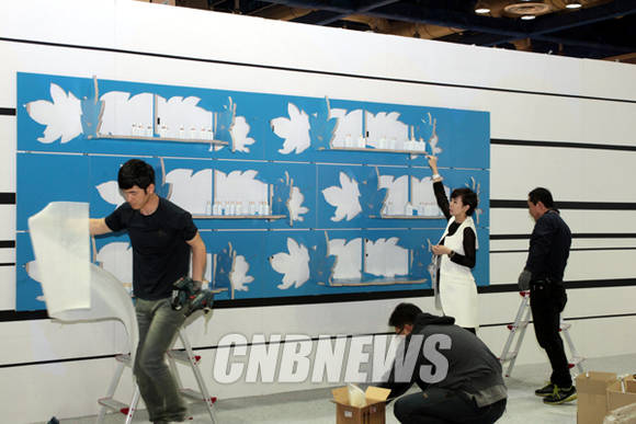 ▲20일 오후 서울 삼성동 코엑스 B 홀에서 진행중인 SOAF를 위해 화랑관계자가 작품 설치를 하고 있다.(사진=왕진오 기자)