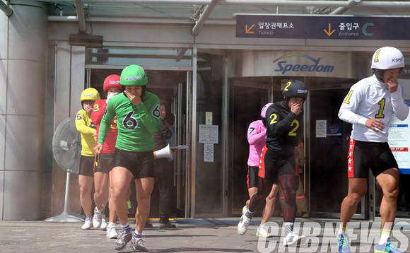 21일 경기도 광명시에 위치한 광명돔 경륜장에서 ‘광명돔 경륜장 현장 종합 대응훈련’이 열리고 있다. (사진=문화체육관광부)
