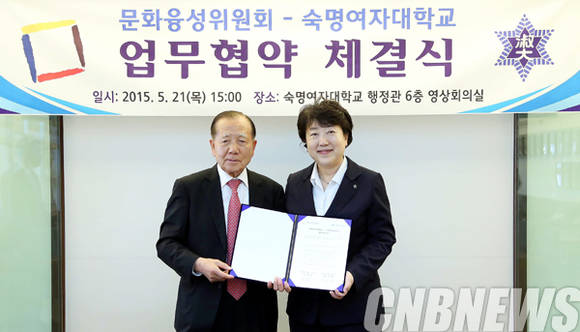 5월 21일 오후 3시 숙명여대 영상회의실에서 열린 업무협약은 ‘문화가 있는 날’ 사업과 관련한 협력을 위한 것으로서 △‘문화가 있는 날’, 지역주민과 함께하는 문화행사 개최 △‘문화가 있는 날’ 문화현장 수업 장려 △문화융성을 위한 기타 협력사업 발굴 등을 주요 내용으로 하고 있다.