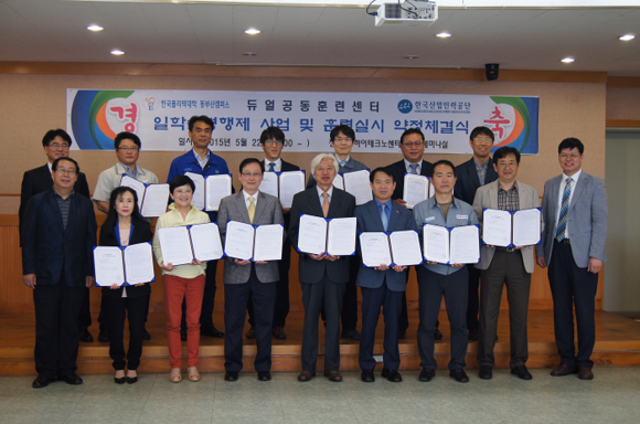 한국폴리텍대학 동부산캠퍼스(학장 한상규)가 듀얼공동훈련센터로 선정돼, 지난 22일 교내 하이테크노센터 세미나실에서 한국산업인력공단 부산남부지사(지사장 류명수), 삼일전기(주)(대표 박판득) 등 17개 참여기관 대표와 일학습병행제사업을 위한 약정체결식을 가졌다.