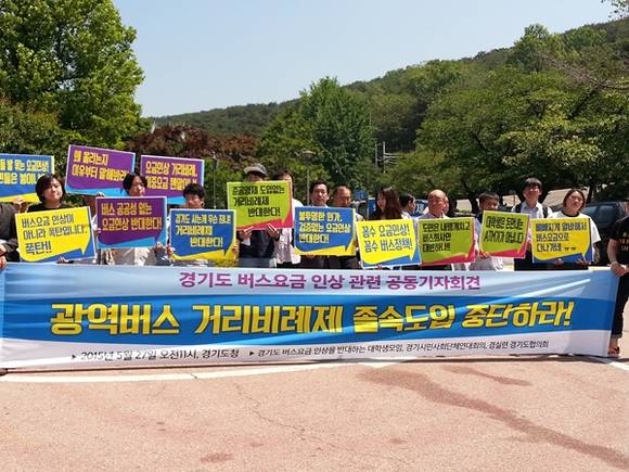 이 자리에서 학생들과 시민단체는 경기도는 광역버스 거리비례제 도입 중단과 버스운송원가를 공개하고 철저한 검증시스템을 구축하라고 주장했다. 또한 준공영제를 도입하는 등 버스개혁의 청사진을 제시해달라고 요구했다.
