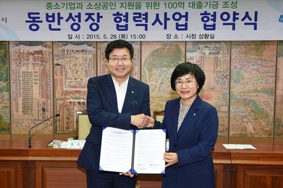 동반성장 협력사업은 수원시가 기업은행에 예치한 예탁금 30억원을 기반으로 기업은행이 100억원의 대출재원을 조성해 재정적 어려움에 처한 수원시 중소기업과 소상공인을 지원하는 사업이다. 오는 7월부터 본격 시행되며 지방자치단체로서는 전국 최대 규모로 수원의 중소기업과 소상공인의 자금난 해소에 크게 기여할 전망이다.