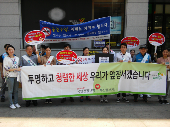 국민건강보험공단 부산중부지사(지사장 이상돈)는 28일 제28회 '세계 금연의 날'을 맞아 중구보건소와 함께 금연·청렴실천 캠페인을 펼쳤다.