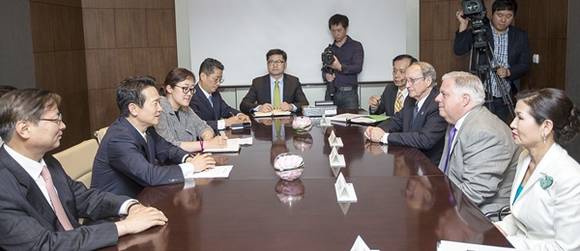 ▲29일 오후 서울의 모 호텔에서 남경필 경기도지사가 래리 호건 메릴랜드 주지사를 면담하고 있다.(사진=경기도)