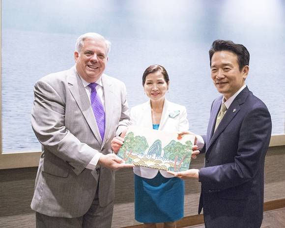 래리 호건 주지사는 “여러 산업이 발달한 한국에 오게 돼 기쁘다며 볼티모어 사태 때 한인 피해가 많았는데 한국인인 내 아내(유미 호건)가 피해 한인들을 일일이 만나며 도움을 주었다. 지난 선거에서도 아내가 당선에 결정적인 역할을 했다”며 한국에 대한 우호적 태도를 표했다.