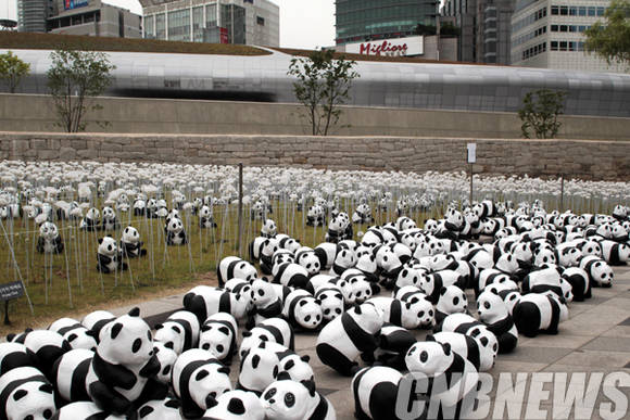 ▲5월 29일 서울 동대문디자인플라자(DDP) 장미정원에서 재활용 종이로 제작된 1600마리 수공예 빠삐에 마쉐 판다의 플래시몹 행사가 열렸다. (사진=왕진오 기자)