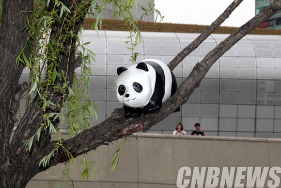 ▲5월 29일 서울 동대문디자인플라자(DDP) 장미정원에서 재활용 종이로 제작된 1600마리 수공예 빠삐에 마쉐 판다의 플래시몹 행사가 열렸다.(사진=왕진오 기자)