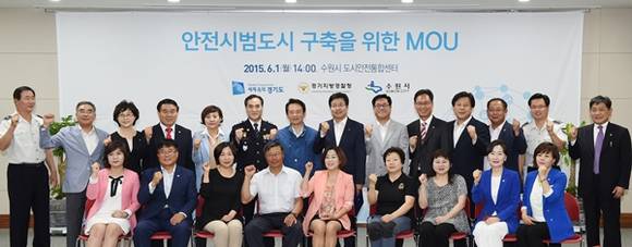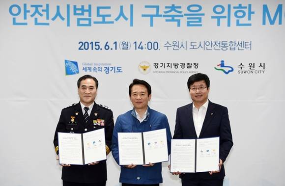 남경필 경기도지사와 염태영 수원시장, 김종양 경기지방경찰청장은 1일 오후 수원시 도시안전통합센터에서 이 같은 내용을 담은 안전시범도시 구축을 위한 양해각서에 서명했다.