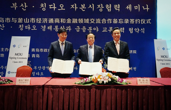 한국예탁결제원(사장 유재훈)이 1일 중국 칭다오시(청도)에서 부산시, 칭다오시와 부산·칭다오 간 경제통상과 금융분야 교류협력 등을 위한 MOU를 체결했다.