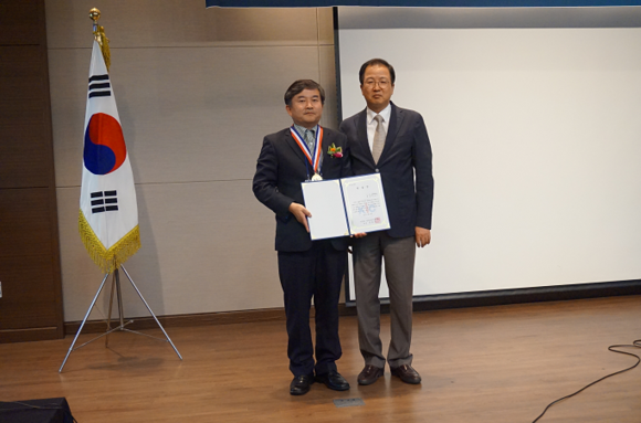 최근 전남 여수 경도리조트에서 열린 한국건축시공학회 춘계학술대회 및 2015년도 정기총회에서 건축시공학회 부회장인 동명대 건축공학과 임남기(사진 왼쪽) 교수가 학술상을 수상했다.