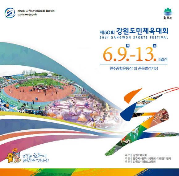 또 구호는 공모로 선정했으며 '건강도시 원주에서, 비상하라 강원체육'이고 표어는 '사랑해요 강원도민, 함께 해요 행복체전'이다.