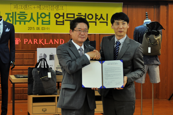 파크랜드(대표 곽국민)는 3일 본사 대회의실에서 협약식을 갖고, 예비 사회적기업 에코인블랭크(대표 신종석)와 친환경 '업사이클링 백' 제작과 경력단절여성들의 자립화 지원을 위한 협약을 맺었다.