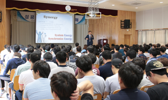 이어 그는 "지능지수(IQ)보다는 감성지수(EQ)와 사회지수(SQ)가 높아야 한다"며 "특히, 사회지수(SQ)는 개인의 노력여하에 따라 얼마든지 높일 수 있다"면서 '시너지(Synergy)' 해석과 함께 협동했을 때 생겨나는 에너지를 강조했다.