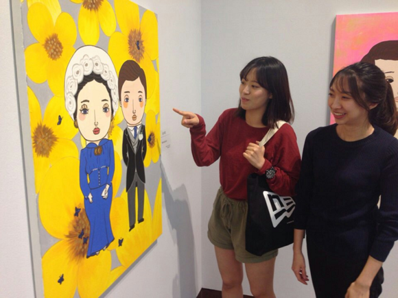 ▲미술작품 판매가 백화점에서도 중요한 부분을 차지하고 있는 가운데, 오는 5일 롯데백화점 센텀시티점은 부산 국제 아트페어 개막에 맞춰 아트경매를 진행한다. 사진은 롯데 광복점 10층 롯데갤러리에서 미술작품을 방문객이 감상하고 있는 모습. (사진제공=롯데백화점)