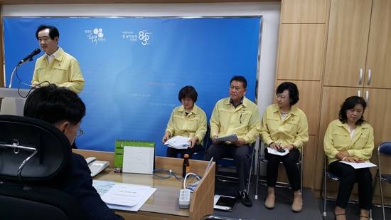 ▲안병용 의정부시장이 기자간담회를 개최해 메르스 관련 시 차원의 종합대책을 발표하고 있다.(사진= 김진부 기자)