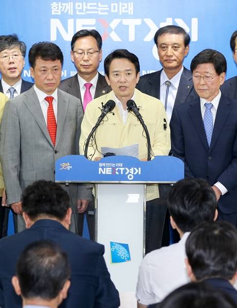 ▲9일 오전 경기도청 브리핑룸에서 열린 메르스 치료 민관 네트워크 출범 기자회견에서 남경필 경기도지사가 브리핑을 하고 있다.(사진=경기도)