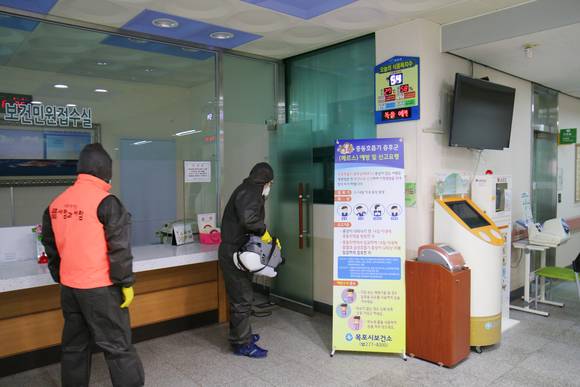중동호흡기증후군(메르스) 우려가 확산되고 있는 가운데 목포 방역전문 사회적기업 ‘사람과 사람’이 지난 8일 목포 보건소와 하당보건소에 대한 무료 방역작업을 시행했다.