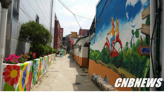 벽화 체험이 한창인 홍천읍 신한은행 뒷골목은 평소 여인숙이 밀집해 컴컴하고 으슥한 분위기로 청소년들의 우범지대였으나 이번 벽화사업으로 연장 150m 구간에 행복하고 즐거운 가족 나들이 길이란 주제로 화사한 골목을 연출하고 있어 시장을 찾는 주민들의 포토존으로 탈바꿈하고 있다.