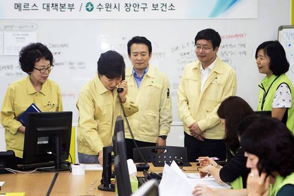 이날 수원시 장안구보건소 현장 방문에는 염태영수원시장, 남경필경기도지사를 비롯해 박인용 국민안전처 장관과 정종섭 행정자치부 장관, 양병국 질병관리본부장 등도 자리를 함께 했다.
