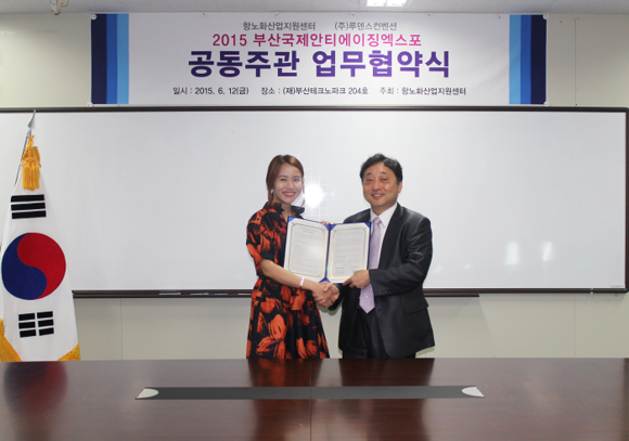 부산대학교(총장 김기섭) 항노화산업지원센터(센터장 김철민·의학전문대학원 교수)는 전시 컨벤션 전문 회사인 (주)루덴스컨벤션과 공동 주관하는 '2015 부산국제안티에이징엑스포'를 오는 8월 28일부터 30일까지 부산 벡스코 제1전시장에서 열기로 하고, 지난 12일 부산테크노파크에서 업무협약식을 가졌다.