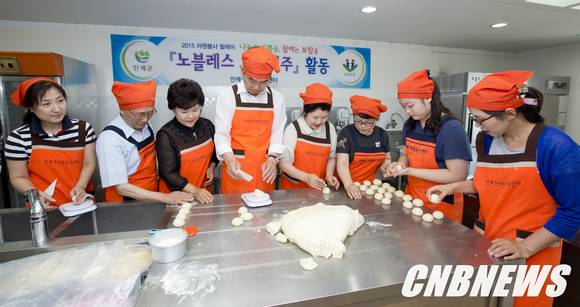 인제군은 15일 자원봉사 릴레이 행사 일환으로 이순선 인제군수를 비롯한 기관 사회단체장 10여 명의 사회지도층 인사들이 인제군 농업기술센터 조리실에서 곰보빵을 직접 만들고 구워 포장하는 등 제빵 자원봉사활동을 전개했다고 전했다.