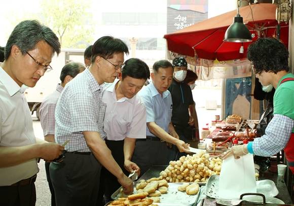 수원시의회 의회사무국(국장 한상담)은 16일 한상담 사무국장을 비롯해 사무국 직원 20여명이 함께 지동시장을 찾아 점심식사를 하고 전통시장에서 물건을 구입하는 등 메르스 극복을 위한 지역경제 살리기에 동참했다.