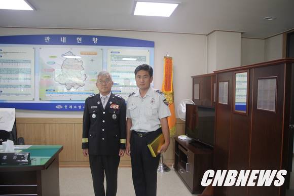 인제소방서(서장 김용락)는 지난 6일 오후 5시경 북면 용대리 미시령터널 인근 도로에서 발생한 대형버스 화재를 신속히 진압해 인명 피해를 막은 인제경찰서 북면파출소 김창남(남, 46세) 경위에게 화재진압 유공 표창을 수여했다고 16일 밝혔다.