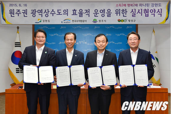 원주시는 강원도, 횡성군, 한국수자원공사와 지난 16일 강원도청에서 원주권 광역상수도를 효율적으로 운영하기 위한 협약을 체결했다고 17일 밝혔다.