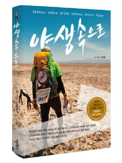 야생 속으로는 한 대학생의 도전 에세이다. 남들은 평생 살아도 할까 말까한 극한의 도전을 1년 안에 다 한 청년의 이야기다. 책에는 1장에서 칠레 아타카마 사막 마라톤 대회 도전기가, 2장에서는 남미 최고봉 아콩카과 등정 이야기가 나온다.