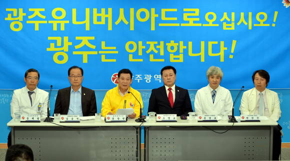 윤장현 광주광역시장은 18일 내외신기자회견을 갖고 "광주는 6년여 동안 150만 시민과 함께 세계 젊은이들의 축제인 2015하계유니버시아드대회를 정성스레 준비해왔다"면서 메르스로부터 안전한 대회가 될 것이라고 강조했다.