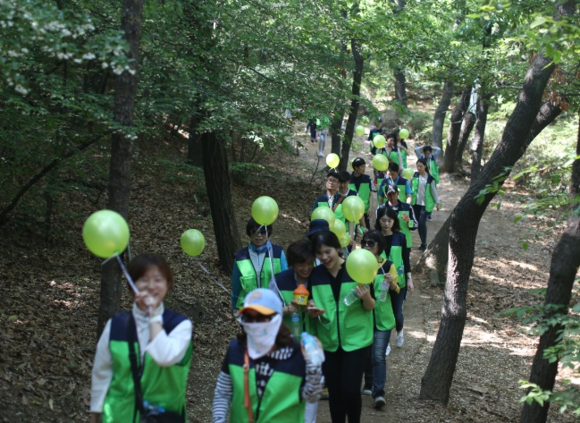 ▲부민병원 강서 둘레길 건강걷기 대회 모습. 이 대회를 통해 적립된 기부금은 디지털 사회공헌 방식을 통해 네팔에 식수키트를 전달한다. (사진제공=서울부민병원)