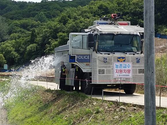 이번 지원은 지난 16일 강원지역 피해농가 지원을 위해 물보급차 3대를 지원한데 이어 경기북부 농촌지역 가뭄 피해농가 지원에 살수차량 2대를 추가로 지원하는 것이다. 경찰 살수차는 한 대당 4t 정도의 물을 저장할 수 있으며 이날 소방서의 협조를 받아 가뭄피해가 극심한 연천 신서면 지역 논 가뭄 해소를 위해 집중 지원했다.