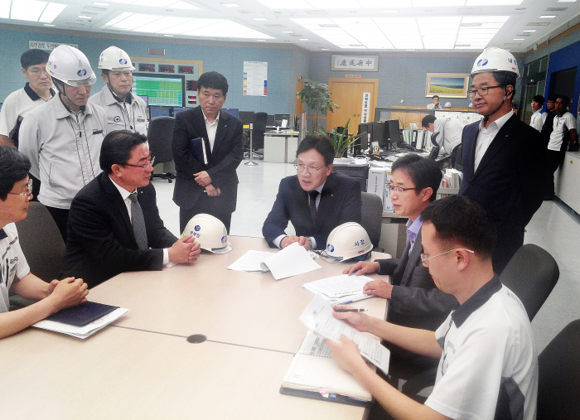▲남부발전 김태우 사장이 지난 16일 부산천연가스발전본부 중앙제어실에서 직원들에게 사이버보안 강화에 대한 당부를 하고 있다. (사진제공=남부발전)
